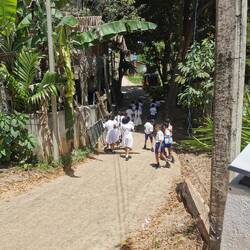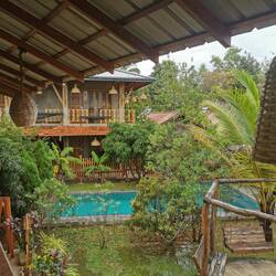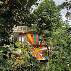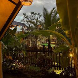 Das mit der Mütze Schlaf wurde nicht so richtig was - erst wurde draußen ordentlich gefeiert und dann ging ein Schauer nach dem anderen über uns nieder. Als eine Kokosnuss mit einem ordentlichen Wumms aufs Dach fiel hatte ich genug und kruschtelte meine Oropax aus der Tasche. Wie mir später berichtet wurde fing wenig später ein streunender Hund auf unserer Veranda an Krawall zu machen und mit unseren Schuhen zu spielen. Sara konnte gerade rechtzeitig noch alles retten, bevor sie in Fetzen hingen. Davon hatte ich dank Oropax dann nix mehr mitbekommen, aaaaber wie gesagt es war einiges los die Nacht. Entsprechend frisch schauten wir drein, als um 4 Uhr der Wecker klingelte. Draußen regnete es in Strömen. Wir waren uns fast sicher, dass die Wanderung nicht stattfinden würde bei dem Wetter, trotzdem machten wir uns fertig und gingen vor zum Treffpunkt. Die Wanderung wurde auf ein paar Stunden später verschoben, wer noch länger blieb sollte morgen nochmal eine Chance bekommen. Also ab zurück ins Bett.