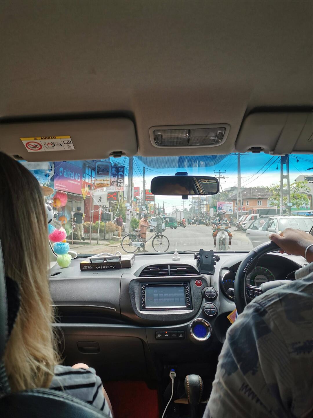 Dann wars fast soweit - ein alter Mann auf einem Moped zog leichtsinnig zum überholen raus und wir mussten eine Vollbremsung machen, um ihn nicht komplett mitzunehmen. Unser Fahrer fluchte, fuhr nach vorne neben den Mann und schimpfte ihm aus dem Fenster entgegen. Der andere zuckte nur mit den Schultern, wackelte mit dem Kopf und fuhr weiter 🤷🏼♀️ Wir mussten an der Seite anhalten und irgendwas am Auto zurücksetzen, bevor es weitergehen konnte. Die restliche Fahrt kostete uns zwar noch ein paar weitere Nerven, ansonsten kamen wir aber letztendlich heile in Colombo an.