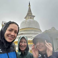 Roshan stand schon bereit mit seinem Tuktuk, wir sprangen rein und schon ging es los. Es hing Nebel in den Hügeln und es war noch angenehm kühl, dementsprechend voll waren die Straßen. Wir schlängelten uns zwischendurch und waren schnell am ersten Haltestopp angekommen - es gab local breakfast. Dann ging es weiter zum Ambuluwawa-Tower, ein 48m hoher Turm, den man über Steinstufen bis hoch zur Spitze erklimmen kann. Schon von Weitem sah Roshan den Berg hinauf und meinte, es könne schwierig werden mit dem Tuktuk da hoch und eventuell müsse eine aussteigen und laufen, wenn es das kleine Gefährt mit unserem Gewicht nicht schaffen sollte😂😂 Na das kann ja was werden🙈