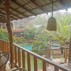 Wir bestellten schnell ein paar Snacks an der Bar und zogen uns in die Chillout Area zurück. In zwei Stunden sollte es zur Sunset-Wanderung gehen, gut dass es in dem Moment anfing wie aus Eimern zu schütten. Joa schauen wir mal, ob wir nachher wandern oder zum Tempel schwimmen werden😅✌🏼