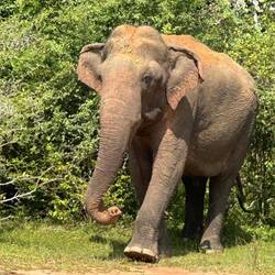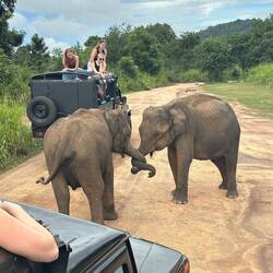 Es tat sooooo gut auszuschlafen! Wir standen ganz gemütlich auf und frühstückten in Ruhe. Um 12.30Uhr gings dann los zur Elefanten-Safari. Dabei wurden wir derart durchgeschüttelt, dass ich froh war noch einigermaßen frische Bandscheiben zu besitzen. Das Wetter schien zu halten, das war Highlight Nummer 2 des Tages. Kurze Zeit später entdeckten wir schon die ersten Elefanten - durch das viele Grün drumrum sahen wir aber eher die Rücken als wirklich das ganze Tier... Dazu kam noch, dass unser Fahrer leider wenig motiviert war. Er ließ alle anderen Jeeps vor oder fuhr nur halblebig hinterher. Dementsprechend wenig sahen wir am Anfang. Zum Schluss bekamen wir aber dann doch noch ein paar Mal die Chance den grauen Riesen schön beim Mampfen zuschauen zu können. Noch kurz kollektiv zum Abschluss zum Ausguck hochgelatscht und ein bisschen die Aussicht genossen, dann hoppelten wir wieder zurück zum Hostel. Auf dem Weg zurück sahen wir neben der Straße auch noch ein paar Elefanten, das ist hier ja anscheinend garnicht so selten dass die einfach gemütlich über die Straße schlendern... 🥰🤷🏼♀️😃Im Hostel gab's dann lecker Abendessen (Eierfladen mit 8 verschiedenen Currys🤤🤤🤤) und anschließend wurde die Quiznacht gestartet. Roshan's Neffe leitete das ganze und dem kleinen Mann zuzuschauen war einfach schon eine Show😅👌🏼Nach dem Quiz gings flott ins Zimmer, morgen früh wollen wir es nochmal mit dem Sunrise-Hike versuchen, das Wetter soll top werden, also Daumen drücken 🤞🏼🤞🏼🤞🏼Læs mere