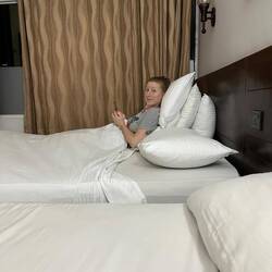 Unsere letzte Nacht war angenehm. So hoch oben im 22. Stock war es zur Abwechslung mal tatsächlich ruhig gewesen und da wir sogar 2 Schlafzimmer hatten, hatte ich diesmal ein Bett ganz für mich alleine 🤩