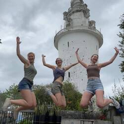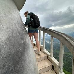 Und tatsächlich, nach den ersten Kurven ächste das Tuktuk schon beunruhigend unter uns. Das war aber noch lange nicht das Ende. Immer steiler ging es hoch. Roshan fuhr entschlossen weiter, er hatte den 1. von 3 Gängen eingelegt, das Tuktuk schrie, dass wir Angst hatten gleich könnte was explodieren. Als er dann auch noch anfing auf der sowieso schon engen Straße zickzack zu fahren um der Steigung auszuweichen dachte ich, ok das wars jetzt aber wirklich.... aaaaber nein, wir schafften es tatsächlich bis ganz nach oben und niemand musste laufen 😅👌🏼🙈 Das Alles war natürlich schon wieder aufregend gewesen, der spannendste Teil stand uns aber ja noch bevor - der Turm. Es ging die ersten Stockwerke nach oben. Im dritten Stock gab es die erste Aussichtsplattform. Wir verschnauften kurz und schauten uns um. Hmm, das war halt von hier schon verdammt hoch und jetzt sollten ja noch etliche Stochwerke folgen 😬🫣Also gut, weiter geht's. Bis Stockwerk 9 konnte man im Inneren des Turmes aufsteigen, ab da ging es nurnoch außen weiter da es innen zu schmal wurde. Sara kapitullierte und Lulu und ich versuchten noch ein Stück. Ich denke bei mir war es so ca. Stockwerk Nr. 12 als der Weg so schmal wurde, dass ich mit dem Rucksack nicht mehr richtig durchpasste. Ich hätte seitlich gehen und den Rucksack über das Geländer hängen müssen, um weiterzukommen - das war mir dann doch zu doll... 🤯🫣🙈