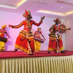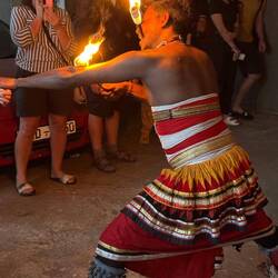 Als letzter Programmpunkt stand die Kultur auf dem Plan. Roshan brachte uns zu einer traditionellen Tanzshow. Wir mussten echt lachen, denn wir wurden einfach überall wo wir mit ihm auftauchten wie VIPs behandelt (tja Beziehungen muss man haben😎). So auch hier - wir wurden direkt an den anderen Leuten vorbei und in die erste Reihe verfrachtet. Die Tänze und die Outfits waren beeindruckend. Alles wurde begleitet von rhythmischem Getrommel. Es gab zb. einen Tanz der Teepflückerinnen, dann noch einen Pfauentanz und noch viele mehr. Für den letzten Part wurden wir ein Stockwerk tiefer gebeten - die Feuershow🤯🫣🙈 Die Jungs heizten sich nochmal richtig ein mit wildem Getrommel, Gesang und Pfiffen. Dann wurden mit Feuerstäben die Arme entlang gestrichen, mit Pulver Feuerbälle durch die Luft geschleudert und zum krönenden Abschluss über brennende Kohlen gegangen. Wir standen ca. mit einem Meter Abstand daneben... AIAIAIIII Die waren echt nicht mehr ganz sauber!!! 🙈