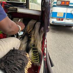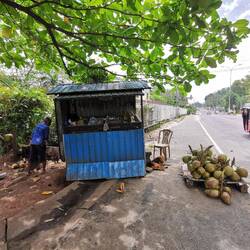 Der Taxifahrer hatte sich wohl in den Kopf gesetzt, die verloren gegangene halbe Stunde wieder reinzufahren - er fuhr wie ein absolut Verrückter. Unsere französische Freundin fasste sich ein Herz und meinte nach einer Weile und etlichen ziemlich brenzligen Situationen "Wir haben es wirklich nicht eilig, wir möchten gerne lebend in Colombo angekommen...!". Unser Fahrer lachte nur, ließ sich davon aber nicht besonders beeindrucken.
