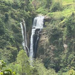 Die Aussicht war herrlich, die grün bewachsenen Hügel, die Teeplantagen auf denen man immer mal bunte Punkte zwischen den Reihen sah (die Teepflückerinnen mit ihrer farbenfrohen Gewändern), gewaschene Kleidung, die zum trocknen über die Hecken oder auf die Dächer gelegt worden war und immer zwischendurch kleine Dörfer durch die man fuhr. Wir machten noch einen kurzen Halt, an einer Stelle, von der man aus der Ferne einen großen Wasserfall sehen konnte. Als wir ein Stück vor liefen, kam uns ein kleiner Welpe entgegengesprungen und wir waren ganz im Glück. Unser Fahrer hatte Pomelo für uns gekauft und machte ein Zeichen, dass wir weiterfahren sollten. In dem Moment kam ein kleines Mädchen gerannt, schnappte sich den Hund und stolperte mit ihm davon. Ihre zu große Hose rutschte übers Ärschle und sie hatte schwer damit zu kämpfen den Hund hoch genug über dem Boden zu halten und gleichzeitig die Hose wieder hochzuziehen. Trotzdem hatte sie ein breites Grinsen auf dem Gesicht und freute sich wohl ihr kleines Haustier vor uns gerettet zu haben 🤗😅