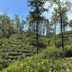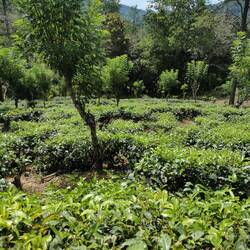 Nach 1,5h machten wir eine kleine Rast an einem Aussichtspunkt. Anschließend ging es weiter, immer schlängelnd an den Teeplantagen vorbei. Früher baute hier jeder der ein bisschen Land besaß Tee an. Als die Briten die Herrschaft übernahmen kauften sie das ganze Land auf, rodeten fast alle Bäume und verkauften das Land an ein paar reiche Leute, die dann ihre großen Teeplantagen draufsetzten. Aktuell gibt es wohl 4 große Kompanien, die das Monopol haben, die kleinen Leute müssen sich mit Gemüse- und Blumenanbau begnügen...