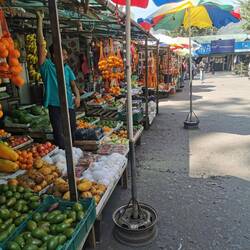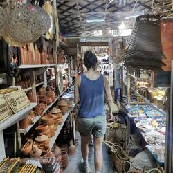 Nagut, wenn der Pool nix war, dann mussten wir eben gleich los und die Stadt erkunden. Da wir Hunger bekamen, liefen wir zur großen Mall und schauten uns dort ein bisschen um. Die Läden waren nicht sehr beeindruckend und das Essen richtig enttäuschend, das hatten wir uns schon mal anders vorgestellt... Anschließend steuerten wir ein Stadtviertel an, in dem in den Straßen ein Markt für alles Mögliche sein soll.