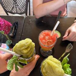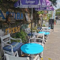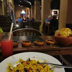 Der vermutete Schauer wurde zu Dauerregen und wir hatten plötzlich wenig Lust nochmal das Haus zu verlassen. Wir wollten uns was liefern lassen, aber irgendwie klappte das nicht und so beschlossen wir gleich gegenüber in einem Restaurant an der Straße zu essen. Der Besitzer freute sich über Kundschaft und plauderte vergnügt mit uns. Das Essen war superlecker und das Obst für unsere Drinks wurde direkt frisch vom angrenzenden Obsthändler geholt, einfach hammer :)