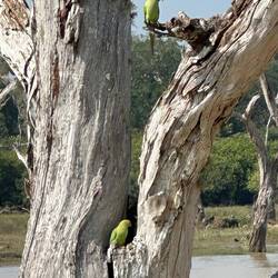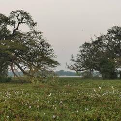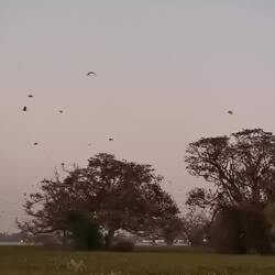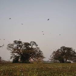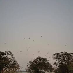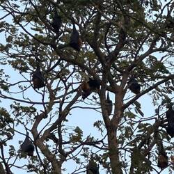 An der beschriebenen Stelle standen riesige Bäume und alle hingen sie über und über voll mit den garnich mal so kleinen Flughunden. Bis die aber richtig munter geworden waren, entdeckten wir mehr und mehr Vogelarten, die nach dem Tag auf dem Weg in ihre nächtlichen Ruhestätten waren. Von kleinen Vögeln wie schwalbenähnlichen oder Sittiche, über kleinen Papageienarten bis hin zu Kranichen und sogar Pelikane - da war so viel dabei, dass wir kaum wussten wo wir zuerst hinschauen sollten. Alle hatten sie ihren eigenen Platz in dem sumpfigen Seeufer. Doch dann kamen die Flughunde. Einer nach dem anderen flatterten sie los, bis der ganze Himmel schwarz gepunktet war - was für eine Show 😍👌🏼🦇