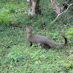 Pünktlich um 4.30Uhr wurden wir geholt. Damid war unser Fahrer. Wir sammelten auf dem Weg noch 3 Jungs aus England ein und fuhren dann zum Eingang des Yala Nationalparks, wobei wir hier schon eine Kostprobe bekamen, wie es nachher im Park sein würde. Damid raste durch die kleinen Sträßchen und überholte die anderen Autos. Aus allen Ecken kamen andere Safari-Jeeps geschossen, jeder wollte schneller sein und bereits die lange Straße bis vor zum Park wurde Rennerles über die Speedbumps gemacht. Wir waren noch zu früh, der Park öffnet ab 6 Uhr. Es hatte sich aber schon eine Schlange an Jeeps davor gebildet. Keine Ahnung ob Damid sich mit einem Kumpel abgesprochen hatte oder ob er einfach nach dem Motto 'Dreistigkeit siegt' es mal versuchte, auf jeden Fall fuhr er rechts an allen vorbei und drückte sich dann in ein paar Jeeps Entfernung vom Gate in eine kleine Lücke zwischen die wartenden Autos.