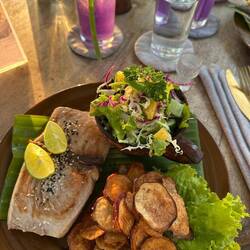 Irgendwann kam der Hunger, deshalb packten wir zusammen und fuhren zurück. Nach einer erfrischenden Dusche gings nochmal vor Richtung Zentrum. Hier gab es eine Anlage mit Pool, Läden drumrum und im hinteren Bereich Restaurants. Bei 'MARU' wurden wir fündig und ließen es uns für den Abend dort gut gehen :) Das war mal ein richtig entspannter Urlaubstage! ☀️🤗👍🏼Læs mere