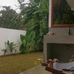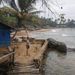 Zurück an der Unterkunft packten wir schnell zusammen, machten den Check-out und weiter gings mit dem Tuktuk gen Süden 🤩 Auf der Fahrt gab's keine weiteren Komplikationen, wir hielten nur kurz, um nochmal die Reifen zu checken, Obst zu kaufen und für den Fahrerwechsel. Zu sehen gab's auf der Strecke nicht wirklich was, die Straßen waren gesäumt von Müll und es gab nur hier und da ein zerfallenes Haus. Dafür freuten sich weiterhin die Leute an uns und wir wurden wieder viel gegrüßt. In Tangalle angekommen bezogen wir direkt unsere nächste Unterkunft - Huiii das is mal n Häuschen 😍😁👌🏼
