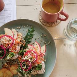 Auf 9 Uhr waren wir vorne an der Hauptstraße und wieder zu dritt. Es gab Frühstück im Marshmallow Café. Wir saßen ganz vorne auf der Terasse und hatten einen Mega Blick aufs Wasser. Als unsere Avocado Toasts kamen, kam auch die Sonne raus und wir ließen es uns schmecken 😍👌🏼