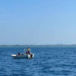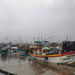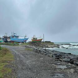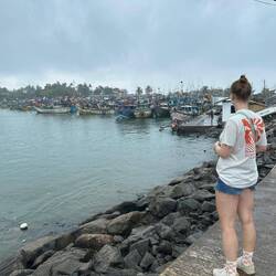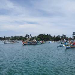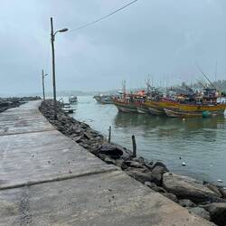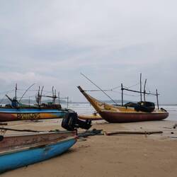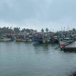 Wieder regnete es als wir wach wurden. Auch für heute war das Wetter nicht besonders prickelnd angesagt. Naja mal schauen was wir bekommen, erstmal müssen wir ja eh noch ein Stück weiter fahren zu unserem nächsten Stopp nach Weligama. Wir packten zusammen, gaben nochmal dem Hund zu futtern, packten alles ins Tuktuk und fuhren los. Auf dem Weg hielten wir noch bei Dondra Port, einem Fischerhafen. Ich wollte unbedingt die vielen bunten Fischerboote sehen 🤩🤩 Als wir ankamen hatte es natürlich wieder angefangen zu regnen 🙄 Egal, die Boote sahen so cool aus, dann eben mit bissl Wasser auf dem Kopf... Die Fischer schauten uns teils sehr skeptisch an, teils freuten sie sich und grüßten uns freundlich. Lulu und ich liefen den Pier nach vorne und schauten uns das bunte Treiben an. Es quitschte und plätscherte aus allen Ecken, viele Boote hatten ganzschön Schieflage, aber wie immer schien alles seine eigene Ordnung zu haben und es wurde fleißig gekurbelt und gezogen oder einfach dagesessen und geschaut :) Sowas liebe ich ja! Ich wär gerne noch länger geblieben und hätte das Ganze auf mich wirken lassen, aber der Nieselregen war schon lästig und wir wollten ja dann auch weiter... In Weligama angekommen, ließ ich erstmal beim Rangieren das Tuktuk an einer Mauer hängen... Suuuper, irgendwas schaff ichs doch immer Autos zu schrotten 🙄 Es war aber wirklich nur ein Kratzer, das sollte durch die Versicherung abgedeckt sein... 🤞🏼🤦🏼♀️
