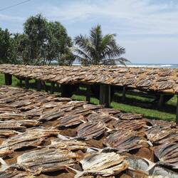 Die Sonne strahlte und ich sprang aus dem Bett, um gleich nach vorne zum Strand zu springen. Huuuiiiiiii das war vielleicht ein bisschen zu flott gewesen, als ich am Wasser stand drehte sich alles und die Sonne bruzzelte derart auf mich runter - wir hatten es uns ja schon ausgemalt mit der Hitze hier, aber das war auf jeden Fall ANDERS heiß! Egal, wir schauten uns ein bisschen um bevor es schnell zurück ins Kühle ging. Wir brauchten Wasser! Also zogen wir uns kurz um und gingen nach vorne. Unsere Gastgeber wünschten uns mit einem verschmitzten Lächeln einen guten Morgen, fragten uns nach unserer Nacht und wiesen uns den Weg zum nächsten kleinen Store wo wir mit Händen und Füßen ein paar Flaschen Wasser kauften.