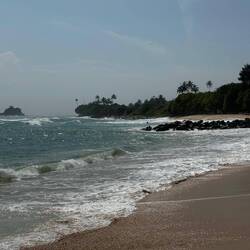 Es war so schön am Strand entlang zu gehen und durch die Wellen zu laufen. Es reihte sich Bucht an Bucht und Restaurant an Café. Natürlich boten uns alle ihre Liegen an, aber wir wollten erstmal ein bisschen schlendern und schauen. Unter einer Gruppe Palmen fanden wir unser Plätzchen, legten die Sachen ab und dann ab ins Wasser. Die Temperatur des Wassers war perfekt, nicht zu kalt dass man garnicht erst reinkam, aber auch nicht zu warm, dass es keine Abkühlung mehr gewesen wäre - einfach herrlich 🤩🌊☀️ Nach 2h frischte der Wind ordentlich auf und da wir ein bisschen Angst vor einem erneuten Schauer hatten, packten wir zusammen und fuhren nach Hause. Dort einmal frisch gemacht gings auch schon wieder los zum Strand, um den Sonnenuntergang anzuschauen und etwas zu essen. Wir wurden am Tangalle Beach fündig. Der Schauer blieb aus und wir dinnierten mit den Füßen im Sand und den Wellen in den Ohren, hach so schee 😎👌🏼Læs mere