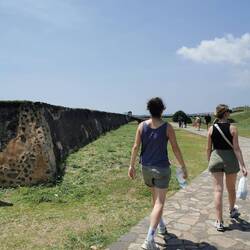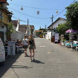 Der nächste Bus kam auch direkt und wir fuhren 40min die Küste entlang. Wie sich rausstellte lag der schönste Teil des Städtchens in dem Fort selber. Es gab hier etliche Restaurants und richtig viele süße kleine Läden. Unser Shoppingherz glühte 🤩 Wir schlenderten umher, über die Stadtmauer, am Leuchtturm vorbei und ungefähr in jeden einzelnen Laden 😅👍🏼 Wir hatten auf 17 Uhr im Restaurant reserviert und wollten noch auf dem Rückweg in Midigama bei den Handwerksständen halten, deshalb lief uns dann tatsächlich ein bisschen die Zeit davon. Es war aber auch brütend heiß und soweit hatten wir das Meiste gesehen, deshalb gings dann wieder zurück zur Bushaltestelle. In Midigama sahen wir uns die schönen Stände mit gewebten Bastkörben, Tontöpfen und vielem mehr an. Aiaiai wie sollen wir das alles in unsere Rucksäcke bekommen?🤯🙈🤷🏼♀️