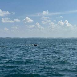 Nach und nach kamen auch ein paar andere dazu und als Delphine gesichtet wurden, war natürlich der Teufel los. Gerade als wir langsam nah genug am Geschehen waren, um dann auch mal richtig was zu sehen, wurde das Frühstück verteilt. Der Reihe nach wurden Toast mit Eiern und Würstchen ausgegeben, immer mit der Anweisung "Sit here!". Euer Ernst?? Jetzt wos losgeht soll ich mich nach hinten setzen und Würstchen futtern 🙄🙈 Ich nahm meinen Teller entgegen, stellte ihn auf meinen Platz und ging wieder nach vorne - das muss ich dann eben nachher kalt essen... Mein Platz vorne war damit natürlich passé, da die Meisten der Mitreisenden aber aus Indien waren, hatte ich tatsächlich (wahrscheinlich das erste Mal in meinem Leben) einen Größenvorteil und sah auch noch aus der dritten Reihe gut :) Und genau in dem Moment tauchte die Gruppe Delphine wieder auf und pflügte durch die Wellen - einfach wunderschön 🐬😍🤗 Nach ein paar Mal auf- und wieder abtauchen waren sie wieder verschwunden. So verbrachten wir ca. eine Stunde - die Delphine spielten Katz und Maus mit den Booten, die rasten immer allesamt an die Stelle wo die Tiere das nächste Mal auftauchten und entweder man war viel zu weit weg, um wirklich was zu sehen oder man hatte Glück und das Geschehen passierte in der Nähe...Da uns aber eine 90prozentige Wahrscheinlichkeit zugesagt worden war, auf der Tour auch Wale zu sehen, drehte die Crew dann irgendwann ab und fuhr weiter....und fuhr....und fuhr...guckte ein bisschen und fuhr weiter.... ohne Wale zu sehen... 😥 Tja das war wohl nix! Ohne auch nur einen Wal gesehen zu haben und nach wie vor mit flauem Gefühl im Magen, fuhren wir zurück in den Hafen. Schade, das mit dem whale watching will irgendwie nicht so richtig klappen bei mir, naja einen Versuch wars wert...