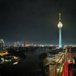 Unser Plan ging perfekt auf und die Tuktuk-Fahrt zurück zum Hotel hob unsere Laune wieder 😅👌🏼 Nach dem Schauer gings nochmal los zum Essen. Wir gönnten uns ein letztes Mal Traditional Curry (es konnte leider mit dem aus Ahangama nicht mithalten, aber war trotzdem sehr lecker!) und ließen den Abend dann noch in einer Rooftop Bar mit Blick auf den schönen leuchtenden Lotus Tower ausklingen. WOOOOW, was für ein Tag!Læs mere