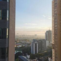 Nach dem Check-in bezogen wir unsere Wohnung und schnauften erstmal durch. Ursprünglich wollten wir ein bisschen an den hauseigenen Pool liegen, um erstmal anzukommen. Da das ganze Gebäude aber noch im Bau steckte, war der wenig einladend. Wir beschlossen uns anstelle dessen die Dachterrasse anzusehen und fuhren in den 52. Stock. Hilfe, so weit oben 🤯🤯🤯🙈 Das ist ja eigentlich so garnicht meins, aber der Ausblick auf den Lotus Tower und bis vor zum Wasser, war schon cool!