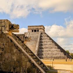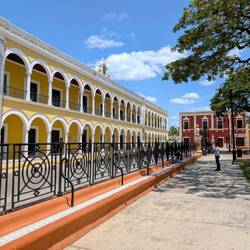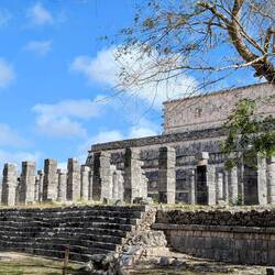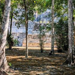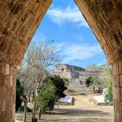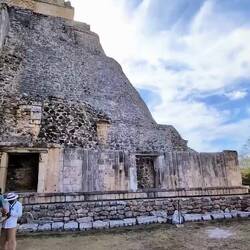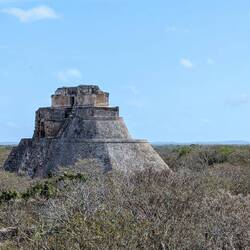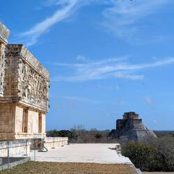 Da wir auf dem Parkplatz bei der Maya Stätte Uxmal geschlafen haben, sind wir fast die Ersten. In aller Ruhe und noch bei angenehmen Temperaturen können wir die beeindruckende AnlageMeer informatie