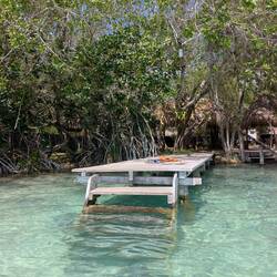 Wir besichtigen Bacalar und fahren 20 km weiter zu einem Traumbadeplatz. Das Wasser, die Landschaft , mega.