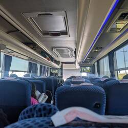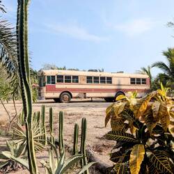 Mit dem öffentlichen Bus geht's Spätnachmittag Richtung Zentrum Oaxaca.