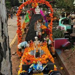 Der Tag der Toten ist einer der wichtigsten Feiertage in Mexiko. Nach altmexikanischem Glauben kommen die Toten einmal im Jahr zum Ende der Erntezeit zu Besuch aus dem Jenseits und feiern gemeinsamMeer informatie