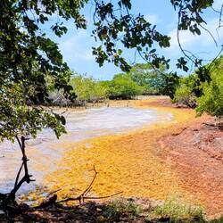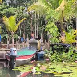 80 km später stehen wir am Fährhafen von Lamanai Tours bei Carmelita.