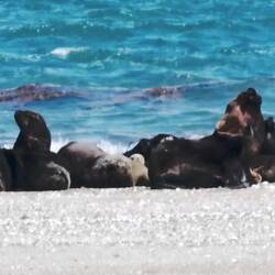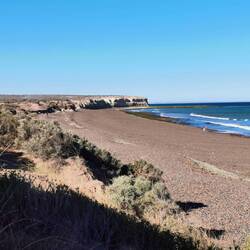 Wir fahren von Puerto Madryn Richtung Norden zum Playa Garipe, einer schönen Bucht mit Sandstrand, von hier soll man Wale beobachten können. Ein paar Wale ziehen vorbei, sieBaca lagi