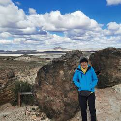 Nationalpark Bosques Petrificados zudem versteinerten Wald. Nach einer 90-minütigen Fahrt durch eine Vulkanlandschaft, vorbei an TafelbergenBaca lagi