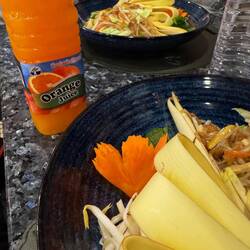 Durch das nächtliche Bangkok geht es weiter zu unserem nächsten Highlight: wir essen das Nationalgericht Nr. 1 in Thailand: Padthai. Wir entscheiden uns für die vegetarische Variante, da wir nichtBaca lagi