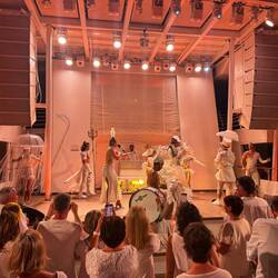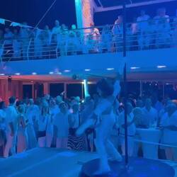 An unserem heutigen Seetag steht ein für Kreuzfahrer obligatorisches Highlight auf dem Programm: die White Night! Wir ziehen uns so weiß wie möglich an und sind begeistert von der Deko am Pool undBaca lagi