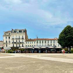Am nächsten Morgen verlassen wir die Insel und fahren in knapp einer Stunde nach Rochefort. Wir haben zentrumsnah geparkt, die Räder ausgepackt und sind losgezogen, eigentlich nur um die Innenstadt zu erkunden. Der zentrale Platz ist sehr schön angelegt, umgeben von vielen ehemals militärischen Gebäuden.