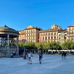An der fruchtbaren Flussaue der Arga erstreckt sich unser erstes Zwischenziel, Pamplona, eine äußerst geschichtsträchtige und traditionsreiche Stadt. Auf den Straßen und Plätzen ihres Altstadtkerns können wir ein bedeutendes Denkmalerbe bewundern, in dessen Mittelpunkt verschiedene Kirchen und die mittelalterlichen Stadtmauern stehen. Pamplona ist eine Stadt, die Tradition und Moderne harmonisch miteinander verbindet, sie wurde im Jahr 75 v. Chr. von dem römischen General Pompeius gegründet. Ihre Bedeutung wuchs im 10. Jahrhundert mit dem Königreich Pamplona. Unter Sancho III. (dem Großen) wurde im 11. Jahrhundert der heutige Verlauf des Jakobswegs durch das Gebiet Navarras festgelegt, was sowohl das Stadtbild als auch die geschichtliche Entwicklung Pamplonas nachhaltig prägte.