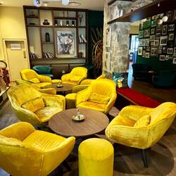 Das erste Hotel auf unserer Reise. Nach der kuschelig-plüschigen Cottage der letzten beiden Nächte residieren wir jetzt in einem kleinen, lichtdurchfluteten Eckzimmer mit zwei kleinen Balkon mit herrlicher Aussicht bis zum Meer. Nach unserer Wanderung gibt‘s zunächst gegenüber im Bistro Cleopatra zwei wohlschmeckende Salate und dann genießen wir die wärmende Nachmittagssonne auf unserem Balkon. So schön!