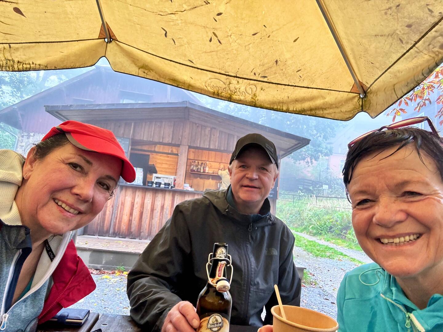 Es ist heute aber auch total ungemütlich und es beginnt zu nieseln. So trennen sich nach den Schrammsteinen unsere Wege. Einige nehmen den direkten, kurzen Weg zur nächsten Unterkunft, Joe, Ingo,Read more