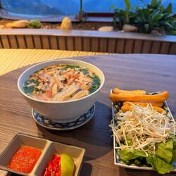 Es ist früher Abend in Viettrekking Coffee in Sapa – die Dämmerung liegt über den Bergen, und der Himmel ist leider etwas eingetrübt. Der Nebel kriecht langsam in die Täler, und von derLeggi altro