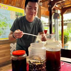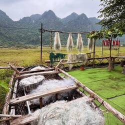 Um 12 Uhr wird an Bord ein vietnamesisches Mittagessen serviert, das wir gemeinsam mit unserer kleinen Reisegruppe einnehmen. Es ist köstlich und frisch zubereitet.