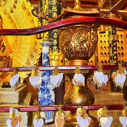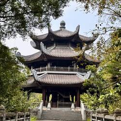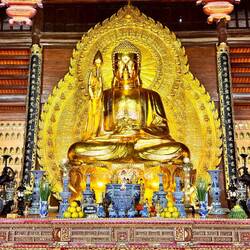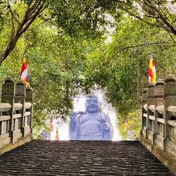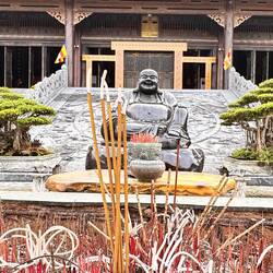 Ein weiterer Höhepunkt ist die riesige bronzene Buddha-Statue in der Haupthalle, eine der größten Vietnams. Sie wiegt mehrere Tonnen und strahlt in ruhiger, majestätischer Gelassenheit. Auch die gigantische Glocke, die zu den größten des Landes zählt, spielt eine wichtige Rolle bei Zeremonien und erzeugt mit ihrem tiefen Klang eine besondere meditative Atmosphäre.
