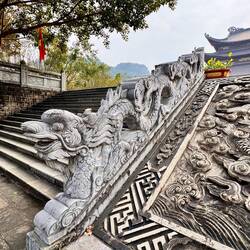 Bai Dinh gilt heute als der größte buddhistische Tempelkomplex Vietnams und sogar als einer der größten Südostasiens. Die spirituelle Bedeutung von Bai Dinh reicht weit zurück. Schon im 11. Jahrhundert, zur Zeit der Ly-Dynastie, befand sich hier ein kleiner Bergtempel, der sogenannte alte Bai-Dinh-Tempel. Diese Dynastie war es auch, die den Buddhismus endgültig zur Staatsreligion erhob. Der Ort wurde bewusst gewählt, denn in der vietnamesischen Vorstellungswelt gelten Berge als Wohnorte der Geister und als Verbindung zwischen Himmel und Erde. In Höhlen und an Felswänden fanden Mönche meditative Rückzugsorte, und über Generationen hinweg entwickelte sich Bai Dinh zu einem wichtigen Zentrum des vietnamesischen Buddhismus.