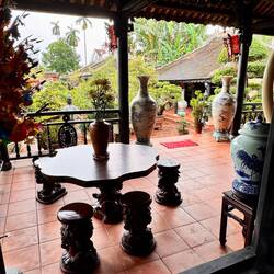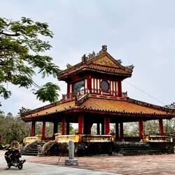 Als wir die Zitadelle wieder verlassen haben, fährt er uns noch zu einer recht weit entfernt Pagode und liefert uns danach direkt im Hotel ab. Wir geben großzügig 500.000 Dong, aber er meint, das sei viel zu wenig. Er hätte uns ja 3 - 4 Stunden durch die Gegend gefahren und auf uns gewartet. Also er müsse 1,2 Millionen, rund 40 € haben. Tja, so wurden wir das erste Mal übers Ohr gehauen. Wir wollen nicht diskutieren und zahlen zähneknirschend, machen ihm aber klar, dass wir erwartet hätten, dass er dieses Summe vorher klar kommuniziert.