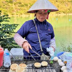 Wir sind schon rund anderthalb Stunden unterwegs, als wir in diesem idyllischen kleinen Restaurant direkt am Fluss mit Aussicht, auf die Reisfelder und umliegenden Berge einkehren und zwei MangoRead more