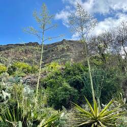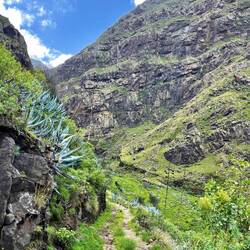 Nach dem Frühstück unternehmen wir diese wunderschöne Wanderung direkt ab der Fincae Longueras. Sie führt uns zunächst entlang des ausgetrockneten Barranco durch das Tal von Agaete nach San PedroLeia mais