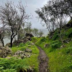 Die 44 km, die wir heute zurücklegen müssen, ziehen sich ganz schön in die Länge. Vor lauter Kurven und steilen Steigungen verliert man bei dem wolkenverhangenen Himmel schnell die Orientierung.Leia mais