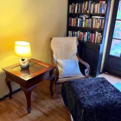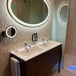 Sebastian und Dwight, unsere beiden Sterneküche erfahrenen Gastgeber verwöhnen uns bei einem ganz privaten Abendessen. Das Wohnzimmer ist mit Kerzen illuminiert, der Kamin ist entzündet, der TischLeia mais