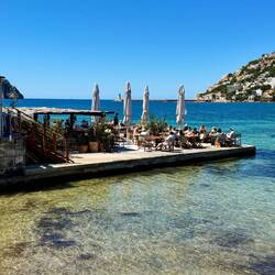 Das Abendessen im Mar y Mar in Peguera ist vor allem eines: ein Erlebnis für die Sinne, das maßgeblich von der erstklassigen Lage direkt an der Playa Tora geprägt ist.