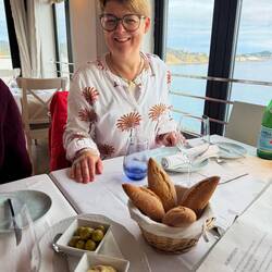Nach unserer Wanderung sind Hunger und Durst groß. Wenn wir schon einmal hier sind, wollen wir auch den schönsten Platz im Ort genießen – und der ist mit Abstand die Terrasse des Hotel Brismar.Baca selengkapnya