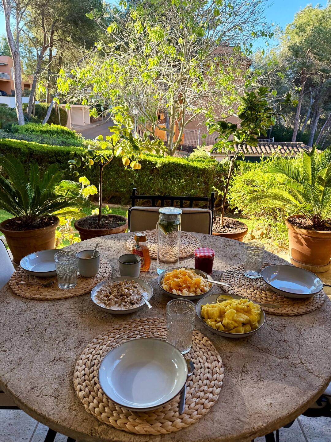 Ein neuer Urlaubstag beginnt. Herrlich, wenn der Tag so genussvoll mit Vogelgezwitscher und einem Blick ins Grüne startet.